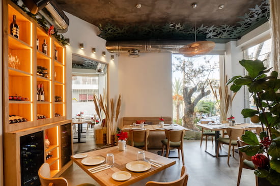 The restaurant is located next to Lato Boutique Hotel, it is easily accessible from the coastal avenue and is served by nearby parking lots.
