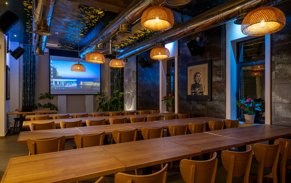 Natural lightPossibility of video conferencingConference reception and registration servicesLCD TVs (also for projection) Fast WiFiIndependent phone linesFoldable projection screen with tripod